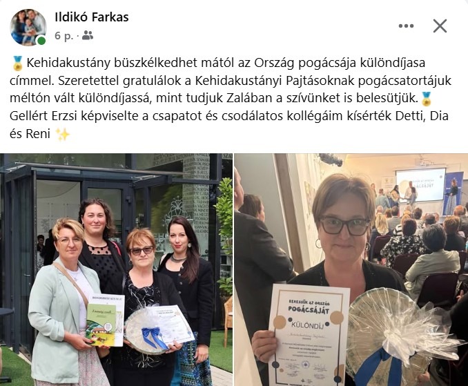 Az Ország pogácsája verseny díjátadóján Különdíjat kapot Kehidakustány